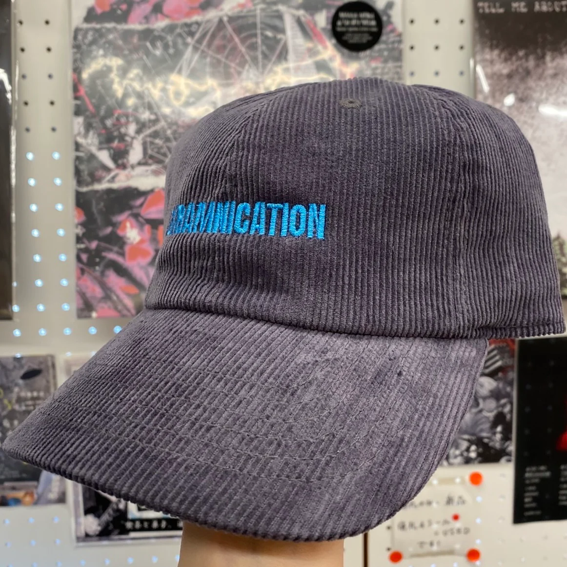 skramnicationの刺繍ロゴが入ったコーデュロイキャップ。